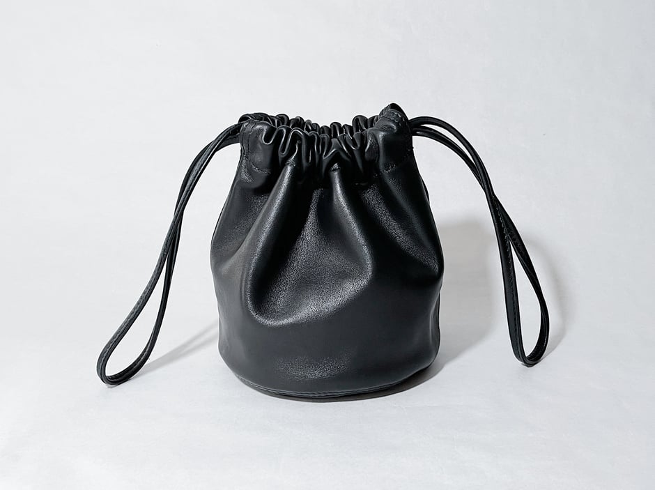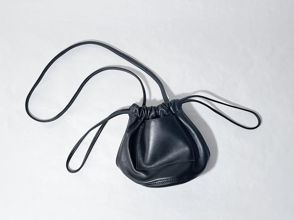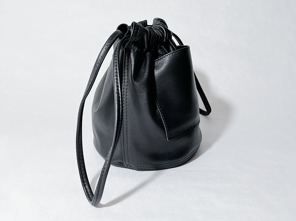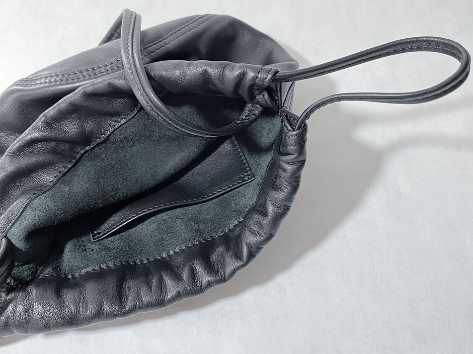 巾着として手持ちできるだけでなく、肩掛けもできるよう加えられたショルダーストラップ、