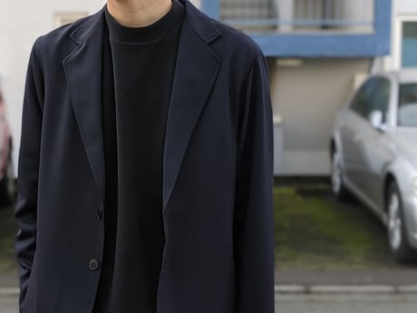 ポケットなどは全て省き、今の気分を踏まえてゆったりとした身幅と着丈、袖は手首に向かって細くなり、少し緊張感のある部分を残すことできちんとした印象に。