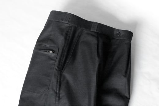 履いた時にしっかりと腰にひっかかってくれるウエストは、ベルトをしなくてもいいようにデザインされている。