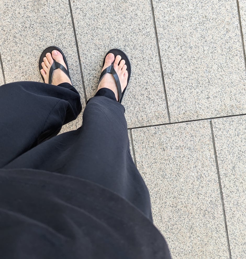 スリッパのモチーフを忠実に再現するためにソールをうすいものにしたこともあって、長時間履いて歩き回ると耐久性のない僕の足は痛くなってくるけれど、それはソールが削れてなくなってきたときに必要であればもう少し厚いものに直せばいい。